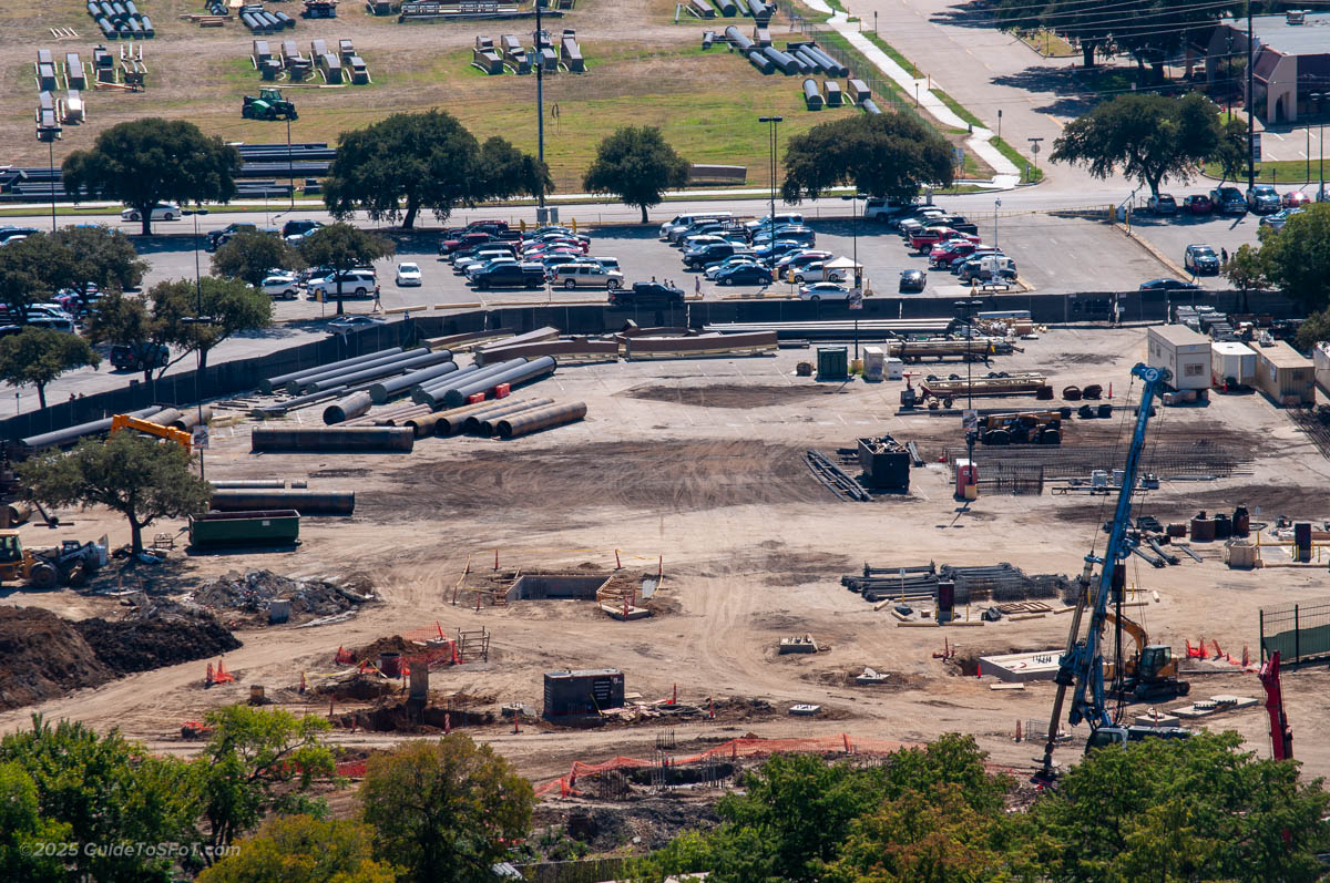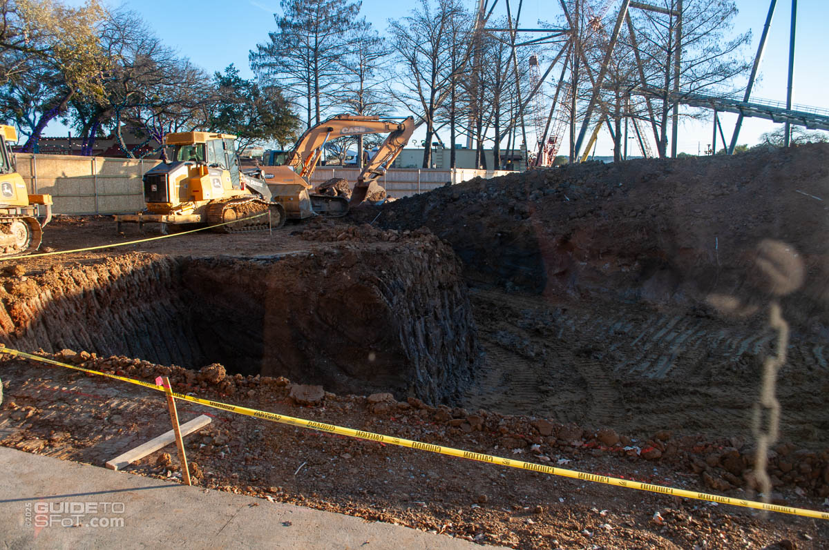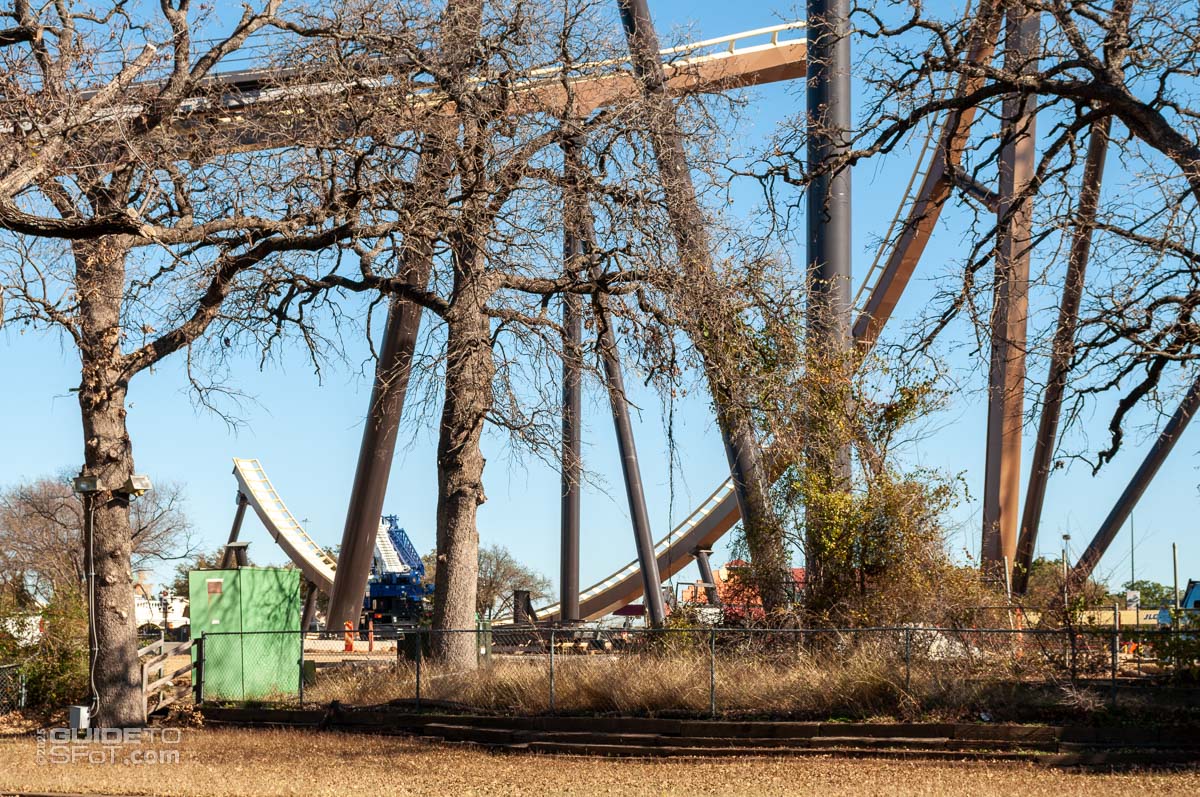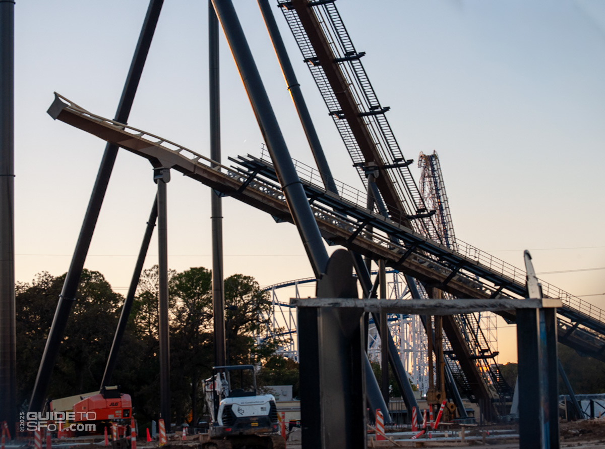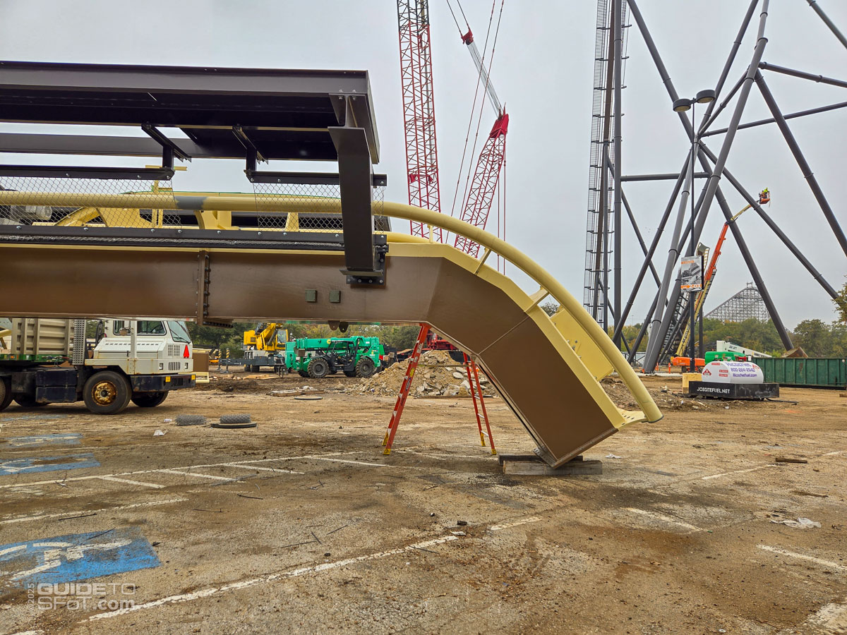 - As of June 2025, track and supports continue to arrive at the park, being staged in the closed-off front Preferred parking lot.