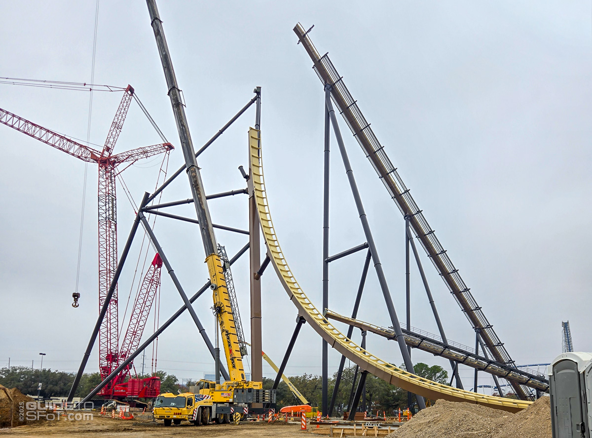 - As of late November 2025, the lift hill has quickly risen to near its apex with the help of a massive crane. The final brake run is also complete.